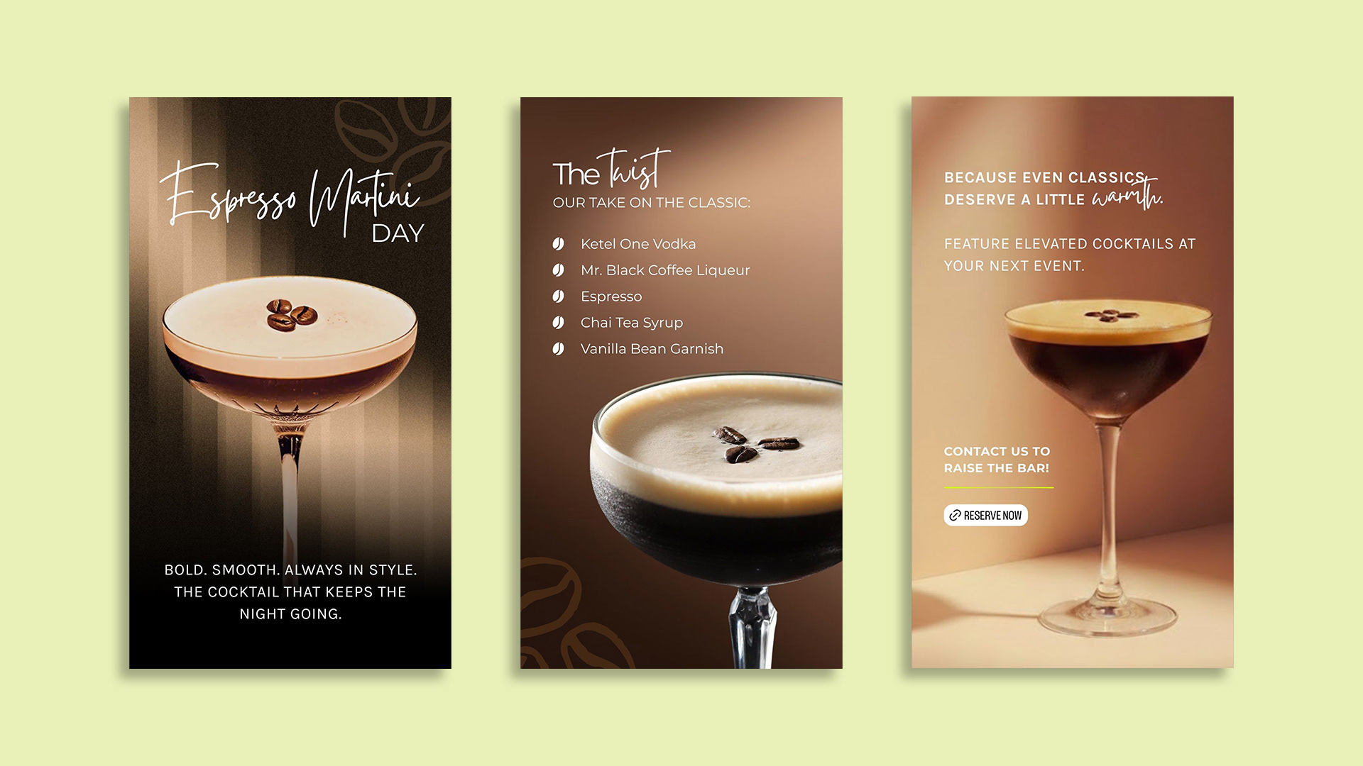 This client is Raising The Bar, which is a mobile bar service based in Atlanta that provides "professional bartenders & craft cocktails for intimate gatherings, weddings, corporate events & more!" Their Instagram is @rtbatlanta.
